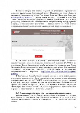В целях её наполнения проводится поисковая и исследовательская работа по сбору информации об участниках партизанского и подпольного движения в годы Великой Отечественной и Второй мировой войн из Башкирии.
