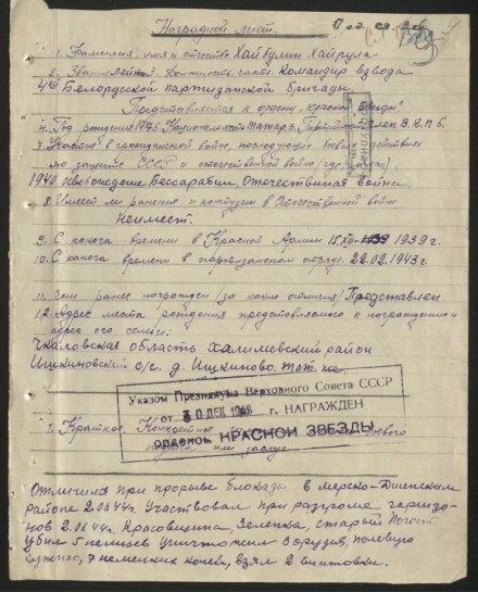 - Хайбулин Хайрула Шарафитдинович («Наградной лист»)