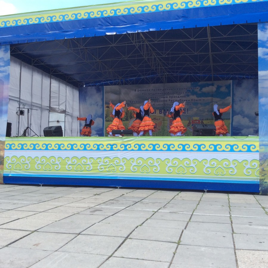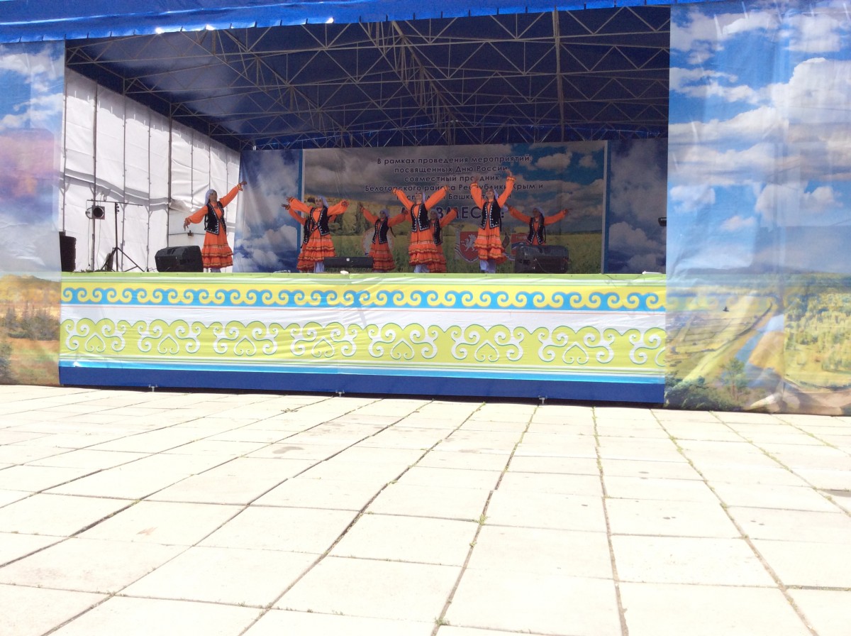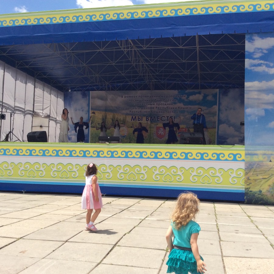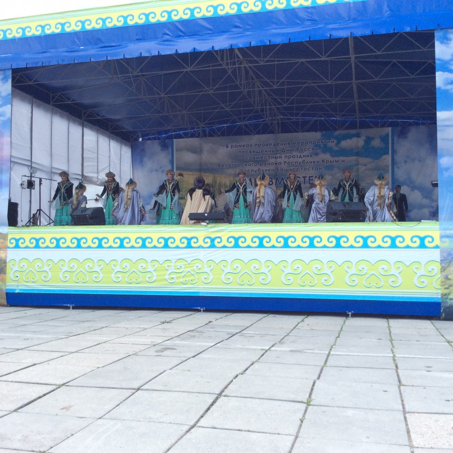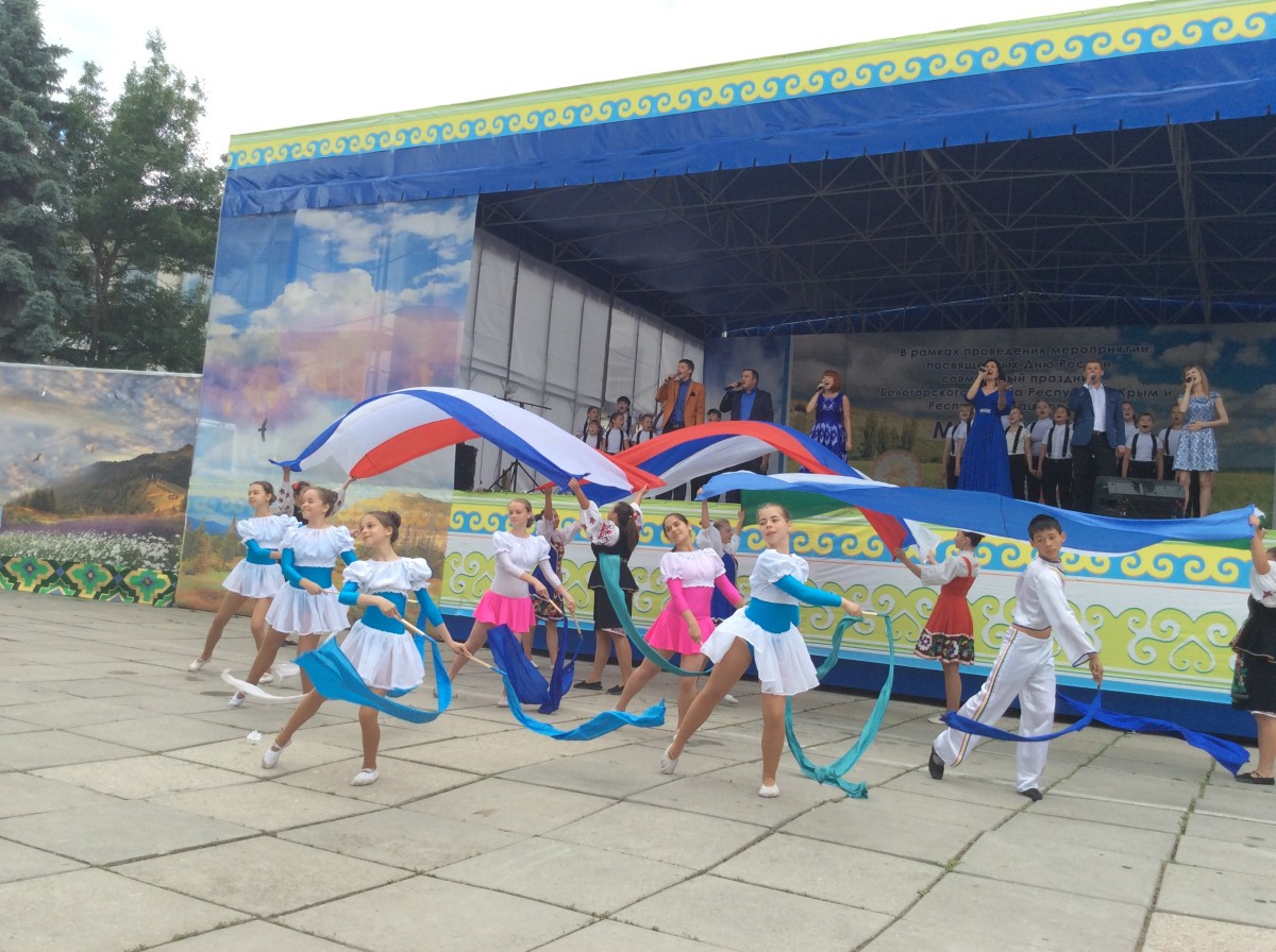 12 июня 2014 года на центральной площади г.Белогорска Республики Крым в рамках празднования Дня России состоялся большой праздничный концерт мастеров искусств Республики Башкортостан и самодеятельных коллективов Белогорского района Республики Крым «Мы вместе!». Праздничные мероприятия посетила официальная делегация Республики Башкортостан во главе с Председателем Государственного Собрания – Крултая Республики Башкортостан К.Б. Толкачевым и заместитель министра культуры Республики Крым С.Д.Косарич. Для участия в празднике приехали также руководители башкирских общественных организаций из Симферополя, Ялты, Коктебеля и других городов Крыма, а также из г.Киева. Константин Борисович поздравил жителей города и гостей праздника с Днем России и передал приветствие Президента Республики Башкортостан Р.З. Хамитова. Участников праздника также поздравили председатель Белогорской райгорадминистрации К.И. Луговик, председатель районного совета С.С. Худоба и глава Белогорского городского совета А.О. Кангиев. Большое впечатление на присутствующих произвело выступление Верховного муфтия России шейх-уль ислам Талгата Таджуддина. Это первое празднование Дня России в Республике Крым после ее воссоединения с Россией и прошло оно на высоком патриотическом подъеме. Концертная программа состояла из нескольких блоков: «Россия», «Мы вместе». Начался концерт вокально-хореографической композицией «Звоны России» в исполнении Фольклорного ансамбля песни и танца «Мирас» г.Уфы и детских коллективов художественной самодеятельности Белогорского района. В концертной программе также приняли участие прославленные артисты республики: Алена Завьялова, Римма Амангильдина, Вадим Закиев, Руслан Сайфутдинов, Любовь Буторина, Диана Ишниязова, Владимир Орфеев, Минзифа Искужина, Венера Юлгильдина, Марсель Саитов, Салават Мухамедьяров. Эстрадно-фольклорная группа «Далан» покорила зрителей песней «Россия – Башкортостан», которую Артур Туктагулов исполнил верхом на коне. Большое впечатление на зрителей произвела песня «Я, ты, он, она» (Р.Рождественский-Д.Тухманов) в исполнении Любови Буториной и Дианы Ишниязовой, детского хора и коллективов художественной самодеятельности Белогорского района. Ведущие концерта заслуженная артистка Республики Башкортостан Рушанна Бабич, Искандер Урманцев и Влада Гудкова профессионально поддерживали настроение зрителей. Зрители были восхищены мастерством артистов Республики Башкортостан и профессионализмом режиссера А.Х. Зубайдуллина. Между Уфой и Белогорском более 2,5 тысяч километров, но, пожалуй, никогда еще жители Башкортостана не были так солидарны с жителями Крыма. В каждой песне, в каждом танце, исполняемых на сцене и белогорцами и башкортостанцами, звучала гордость за Россию. А песня «Мы вместе» в исполнении Любови Буториной, Дианы Ишниязовой, Вадима Сайфуллина и Руслана Сайфутдинова стала апофеозом праздника и сопровождалась скандированием «Россия! Спасибо!» со слезами на глазах. На стадионе города прошли спортивные соревнования, а на центральной площади развернулись этнографические дворики, выставки декоративно-прикладного искусства и ремесленного мастерства. Празднества продолжились вечерней дискотекой с участием белогорских и башкирских артистов и завершились в 24-00 праздничным фейер