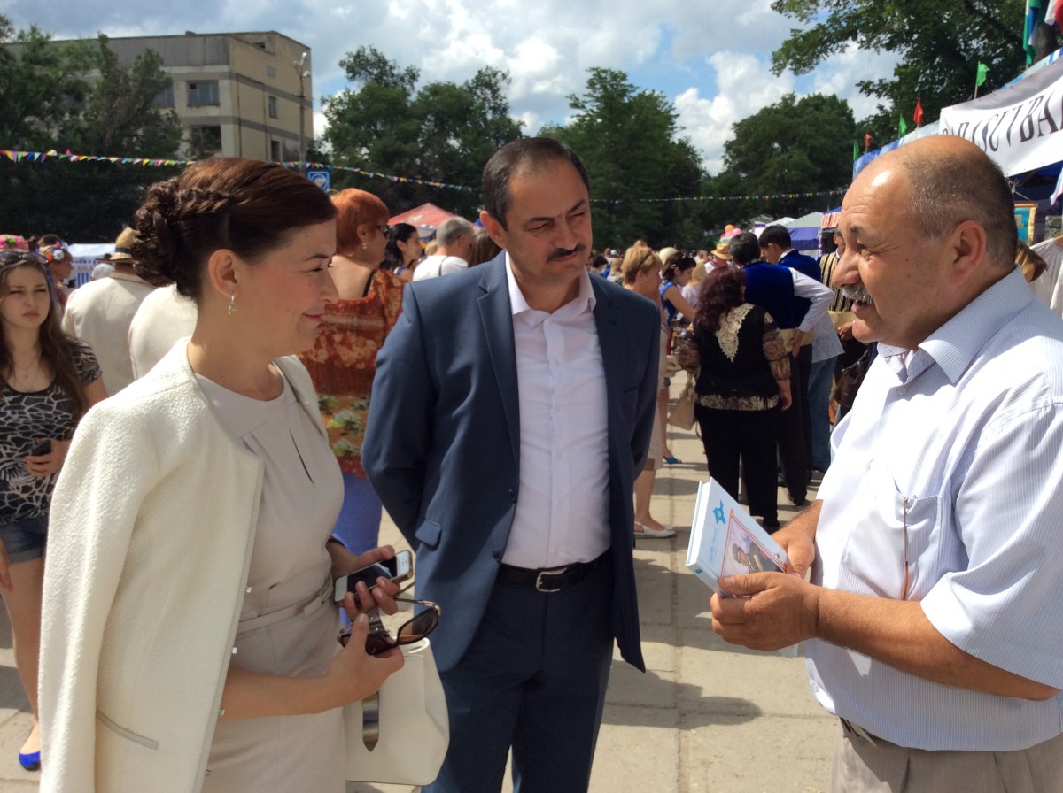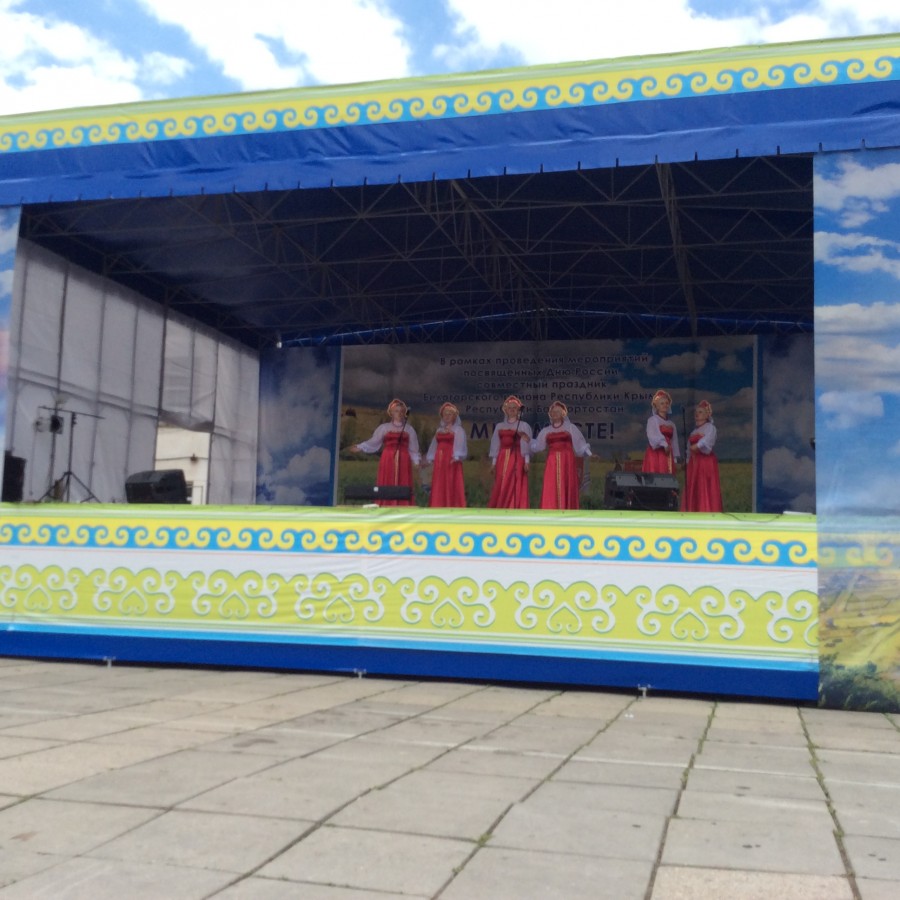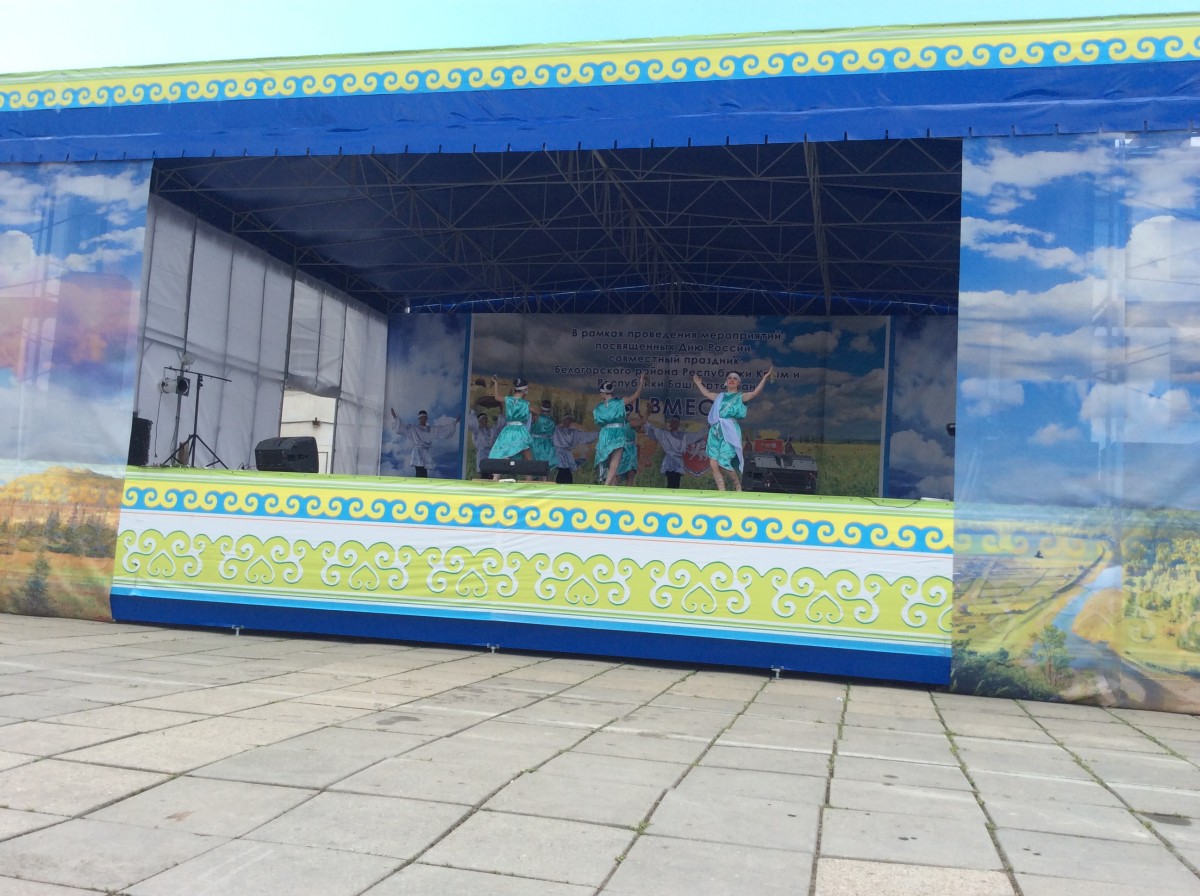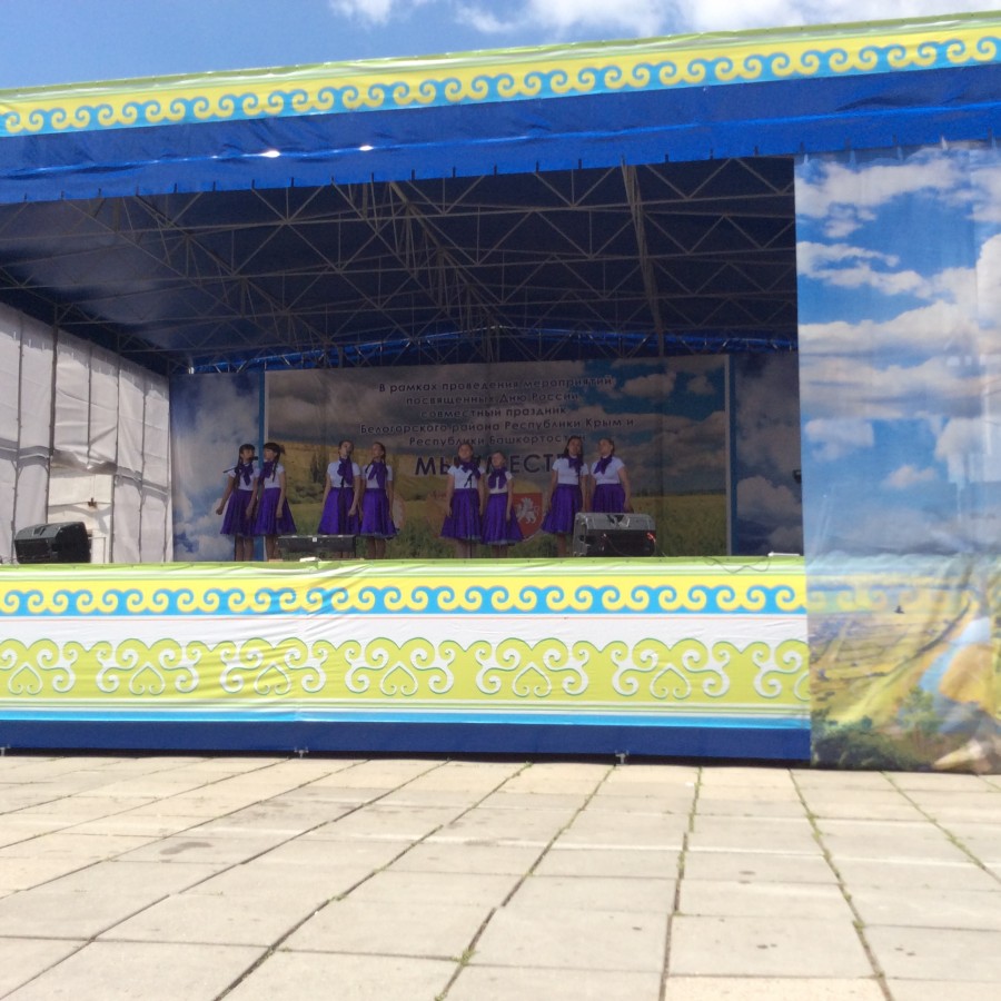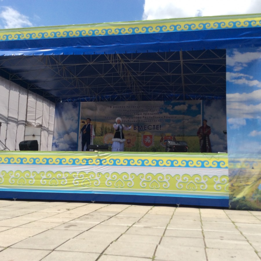 12 июня 2014 года на центральной площади г.Белогорска Республики Крым в рамках празднования Дня России состоялся большой праздничный концерт мастеров искусств Республики Башкортостан и самодеятельных коллективов Белогорского района Республики Крым «Мы вместе!». Праздничные мероприятия посетила официальная делегация Республики Башкортостан во главе с Председателем Государственного Собрания – Крултая Республики Башкортостан К.Б. Толкачевым и заместитель министра культуры Республики Крым С.Д.Косарич. Для участия в празднике приехали также руководители башкирских общественных организаций из Симферополя, Ялты, Коктебеля и других городов Крыма, а также из г.Киева. Константин Борисович поздравил жителей города и гостей праздника с Днем России и передал приветствие Президента Республики Башкортостан Р.З. Хамитова. Участников праздника также поздравили председатель Белогорской райгорадминистрации К.И. Луговик, председатель районного совета С.С. Худоба и глава Белогорского городского совета А.О. Кангиев. Большое впечатление на присутствующих произвело выступление Верховного муфтия России шейх-уль ислам Талгата Таджуддина. Это первое празднование Дня России в Республике Крым после ее воссоединения с Россией и прошло оно на высоком патриотическом подъеме. Концертная программа состояла из нескольких блоков: «Россия», «Мы вместе». Начался концерт вокально-хореографической композицией «Звоны России» в исполнении Фольклорного ансамбля песни и танца «Мирас» г.Уфы и детских коллективов художественной самодеятельности Белогорского района. В концертной программе также приняли участие прославленные артисты республики: Алена Завьялова, Римма Амангильдина, Вадим Закиев, Руслан Сайфутдинов, Любовь Буторина, Диана Ишниязова, Владимир Орфеев, Минзифа Искужина, Венера Юлгильдина, Марсель Саитов, Салават Мухамедьяров. Эстрадно-фольклорная группа «Далан» покорила зрителей песней «Россия – Башкортостан», которую Артур Туктагулов исполнил верхом на коне. Большое впечатление на зрителей произвела песня «Я, ты, он, она» (Р.Рождественский-Д.Тухманов) в исполнении Любови Буториной и Дианы Ишниязовой, детского хора и коллективов художественной самодеятельности Белогорского района. Ведущие концерта заслуженная артистка Республики Башкортостан Рушанна Бабич, Искандер Урманцев и Влада Гудкова профессионально поддерживали настроение зрителей. Зрители были восхищены мастерством артистов Республики Башкортостан и профессионализмом режиссера А.Х. Зубайдуллина. Между Уфой и Белогорском более 2,5 тысяч километров, но, пожалуй, никогда еще жители Башкортостана не были так солидарны с жителями Крыма. В каждой песне, в каждом танце, исполняемых на сцене и белогорцами и башкортостанцами, звучала гордость за Россию. А песня «Мы вместе» в исполнении Любови Буториной, Дианы Ишниязовой, Вадима Сайфуллина и Руслана Сайфутдинова стала апофеозом праздника и сопровождалась скандированием «Россия! Спасибо!» со слезами на глазах. На стадионе города прошли спортивные соревнования, а на центральной площади развернулись этнографические дворики, выставки декоративно-прикладного искусства и ремесленного мастерства. Празднества продолжились вечерней дискотекой с участием белогорских и башкирских артистов и завершились в 24-00 праздничным фейер