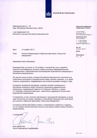 Международный проект Башкортостана и Королевства Нидерландов «Уфимский фестиваль искусств – 2017. “Искусство объединяет”».