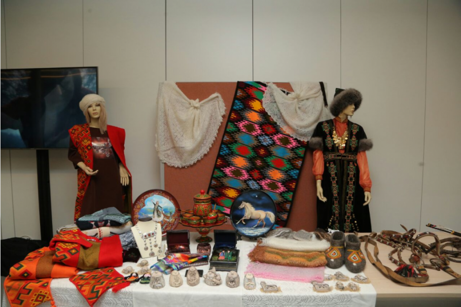 На выставке изделий декоративно-прикладного искусства ГУП БХК «Агидель» были представлены изделия из хлопка, льна, шерсти, трикотажа с башкирским национальным орнаментом, домашний текстиль, национальная стилизованная одежда, палантины, шкатулки, домашняя утварь (кумысницы, чайный набор).