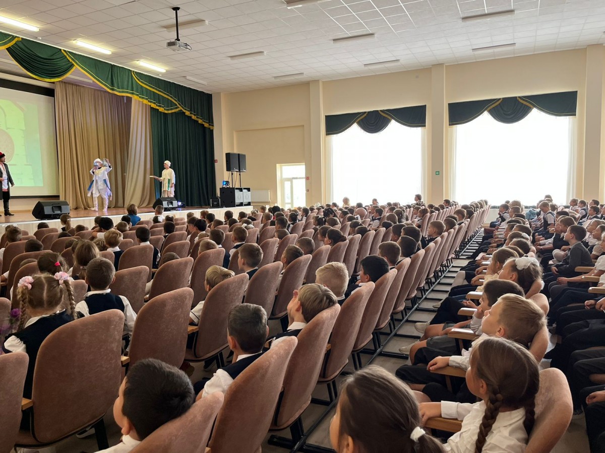 Маленьким зрителям был показан интерактивный спектакль - игра «Аленький цветочек» по мотивам сказки С.Т. Аксакова. Актеры Русского драмтеатра средствами художественного слова и музыки донесли до маленьких зрителей основные посылы С. Аксакова: жить надо по правде и добро всегда побеждает зло.