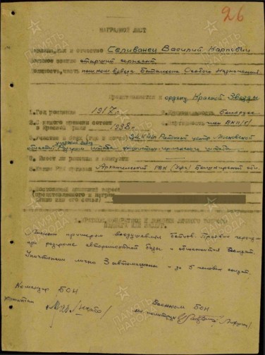 Среди них : орденом «Ленина» капитан госбезопасности Карасев В.А. и др.. Орденом «Красного знамени» старший лейтенант Каверзнев Д.К. и др., Орденом «Красной Звезды» наш земляк Селиванец Василий Карпович 1917г.р.,ур. села Валентиновка, Архангельского р-на БАССР, пом. командира взвода батальона особого назначения Западного фронта.