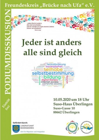 С 4 по 11 мая 2020 года в городах Эслинген и Юберлинген (Баден-Вюртемберг, Германия) реализуется международный инклюзивный проект с участием студентов с ограниченными возможностями Салаватского колледжа образования и профессиональных технологий и пациентов Республиканской клинической психиатрической больницы РБ при поддержке Лечебно-трудовых мастерских WEK г. Эслинген и общества дружбы "Мост в Уфу" г. Юберлинген
