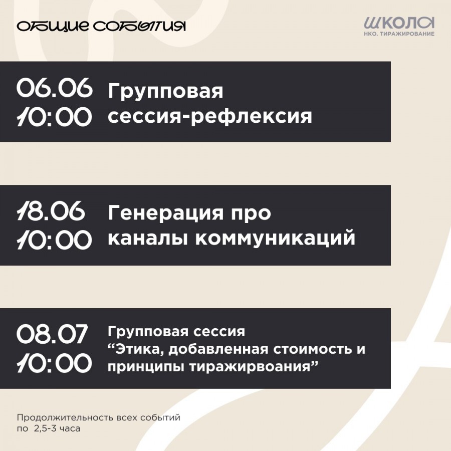 Особую благодарность выражаем руководителю школы, Ольге Петрушиной, а также ведущим вебинаров — Дмитрию Волохову, Максиму Кучеренко и Светлане Спеховой — за их терпение, доброту и щедрость в передаче знаний. Эти уроки останутся с нами и будут помогать в нашей работе.