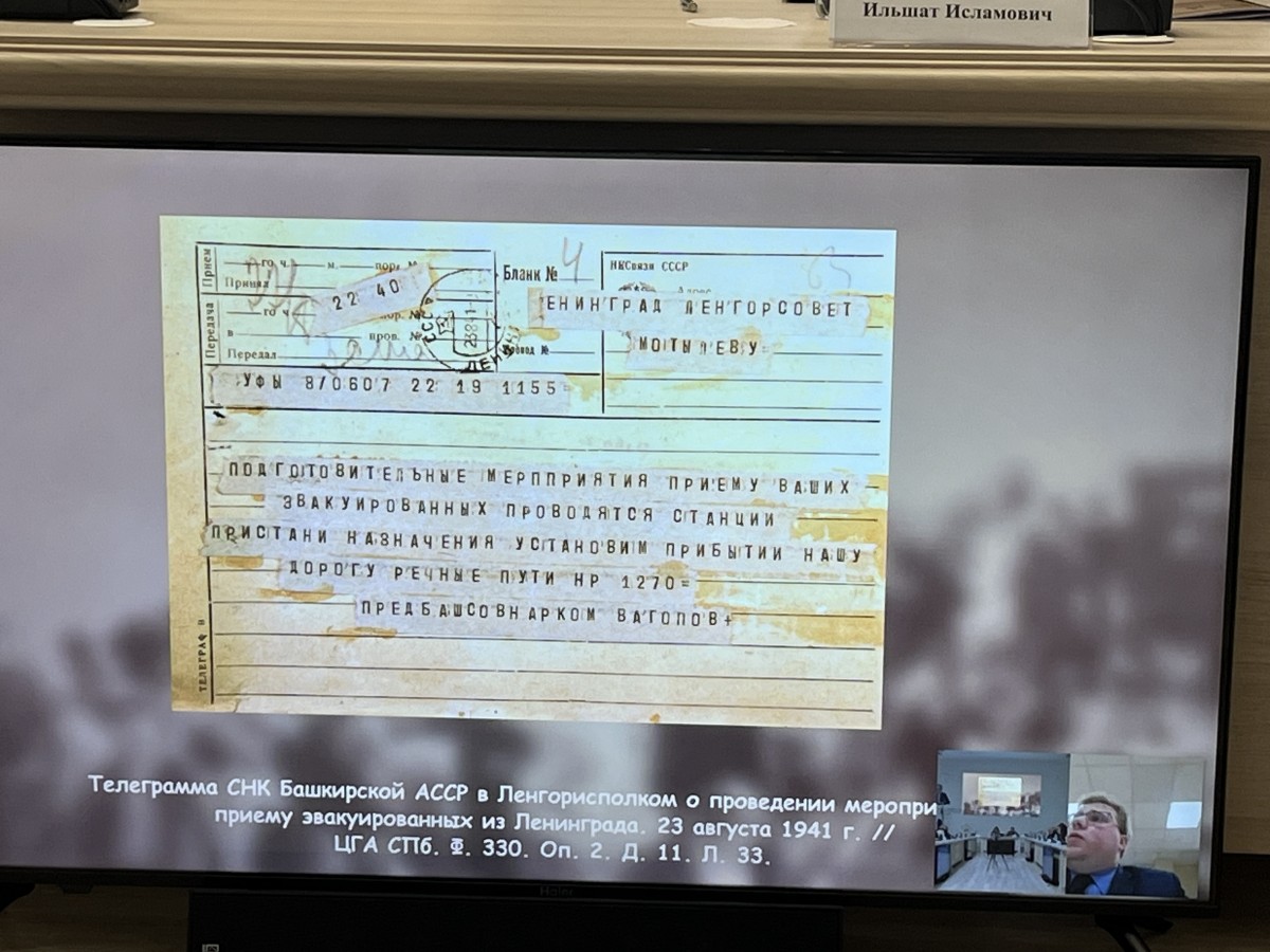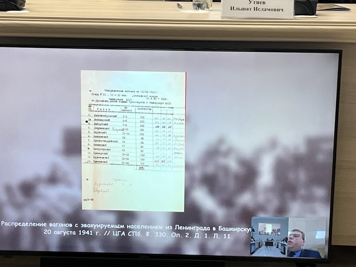 «Тыл бил врага и трудом, и рублём» (о сборе средств горьковчанами в Фонд обороны страны), Рима Сулейманова, заведующий отделом новейшей истории Башкортостана Института истории языка и литературы УФИЦ РАН, доктор исторических наук, главный научный сотрудник с докладом "Решение военно-хозяйственных и социальных задач научными организациями в Башкирии в годы Великой Отечественной войны", Андрей Солнышкин, ведущий архивист отдела использования и публикации документов Центрального государственного архива Санкт-Петербурга с докладом "Межрегиональный мемориальный проект «Сплочённые войной»: эвакуация из Ленинграда и возвращение домой». Новые факты об эвакуации населения, предприятий и учреждений из Ленинграда в Башкирскую Автономную Советскую Социалистическую Республику в 1941 – 1942-Х гг. по документам проекта и Центрального государственного архива Санкт-Петербурга", Андрей Карташов, главный археограф Государственного казенного архивного учреждения «Центральный государственный архив Республики Мордовия», кандидат философских наук "Участие эвакуированных учителей в решении кадровых и организационных вопросов народного образования Мордовской АССР в годы Великой Отечественной войны" и Валентина Латыпова, директор Автономной некоммерческой организации по развитию общественно-культурных инициатив «Центр межкультурного партнерства», кандидат исторических наук с докладом "Архивное наследие о вкладе жителей Башкирии в партизанское и подпольное сопротивление в годы Великой Отечественной войны".