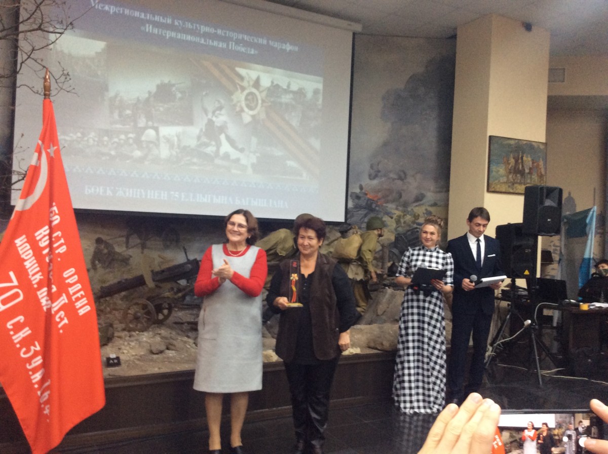 Всем известен подвиг великого татарского поэта Мусы Джалиля. Мы знаем о нашем земляке, уроженце Мишкинского района Гази Загитове, одним из первых водрузивших Знамя Победы над Рейхстагом. Правофланговой в женском авиационном полку была Герой Советского Союза, уроженка г.Белебея Магуба Гусейновна Сыртланова, совершившая 780 боевых вылетов, нанеся противнику значительный урон. О ее боевых подвигах рассказывают книги, изданные в Уфе, Белебее, Саратове, Казани, Москве. Памятники ей установлены в г. Белебее и в г.Белогорске Республики Крым. Об этом рассказали участники нашего проекта из Белогорского района Республики Крым, участвовавшие на открытии фестиваля «Интернациональная Победа» 2 сентября. Руководитель проекта поздравила с открытием презентации и поблагодарила организаторов за подготовку мероприятия.