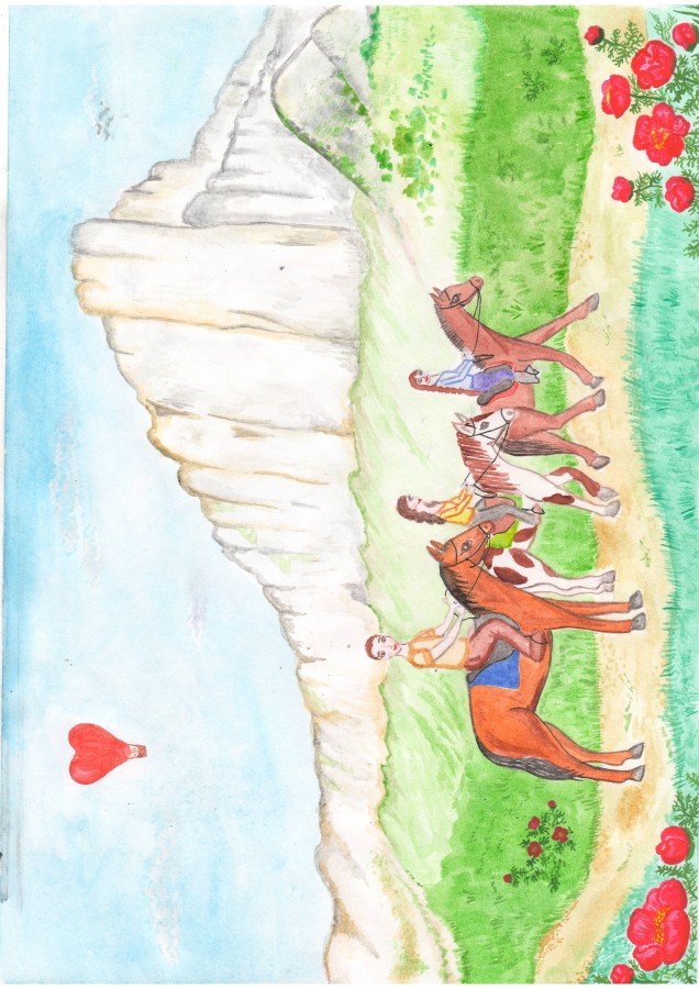 2.Бурундукова Ксения 14 лет Республика Крым Белогорский район пгт.Зуя «Семейная прогулка на лошадях у подножия Белой Скалы»