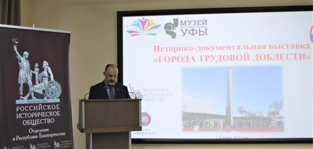 1 декабря в Музее истории города Уфы открылась выставка «Города трудовой доблести. Победа ковалась в тылу». В мероприятии приняли участие заместитель председателя Государственного собрания – Курултая РБ Тамара Тансыккужина, депутат Государственного собрания – Курултая РБ Галина Ишмухаметова, заместитель главы администрации Уфы Владимир Жебровский, заместитель начальника управления по делам архивов РБ Алексей Пешков, заместитель председателя Федерации профсоюзов РБ Наиль Махмутов, председатель Общественной палаты РБ Азамат Янбердин, председатель Регионального отделения Российского военно-исторического общества в РБ Рамтиль Рахимов, директор АНО ПРОКИ «Центр межкультурного партнерства» Валентина Латыпова, ветераны труда, историки, а также общественно-патриотические организации Республики Башкортостан.