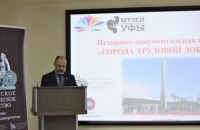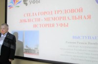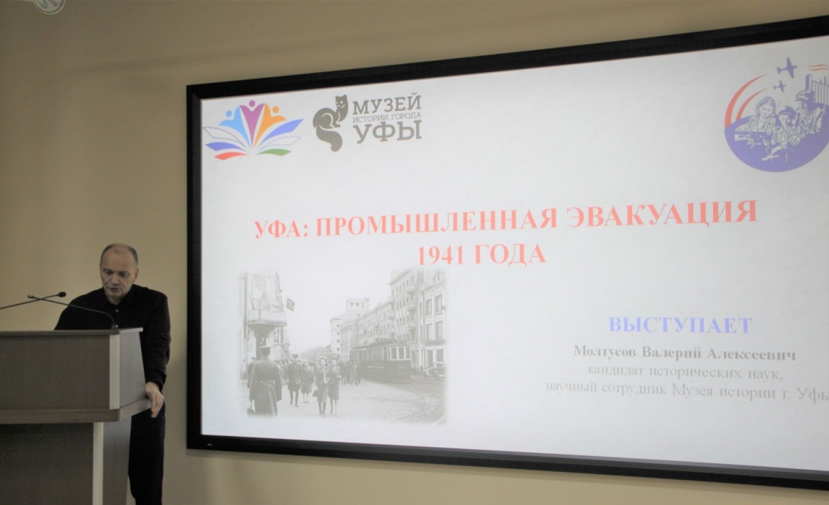 С презентацией планшетной выставки перед собравшимися выступил директор Музея истории города Уфы, кандидат исторических наук Тимур Ильясов. Историк, председатель Российского военно-исторического общества в Республике Башкортостан Рамиль Рахимов рассказал о стеле «Город трудовой доблести» – мемориальной истории Уфы, а научный сотрудник Музея истории города Уфы Валерий Молтусов - о промышленной эвакуации 1941 года в Уфу.