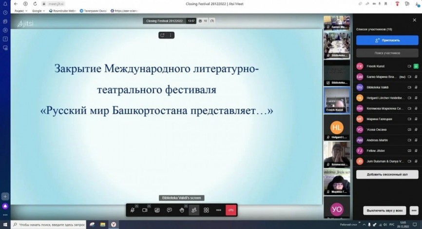 На протяжении нескольких месяцев 2022 года Автономной некоммерческой организацией по развитию общественно-культурных инициатив «Цент межкультурного партнёрства» при поддержке Президентского фонда культурных инициатив проводился масштабный Международный литературно-театральный фестиваль «Русский мир Башкортостана представляет…», охвативший мероприятия разной направленности: литературные и историко-культурные выставки, научные круглые столы, мастер-классы, театральные представления, конкурсы рисунков и многое другое.