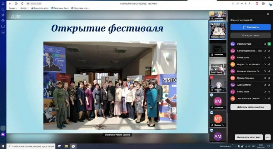 В рамках этого фестиваля проведены два круглых стола: «Сказки-двойники: сравнение русских народных сказок со сказками народов мира» и «Крымская война в памяти народов России», дистанционное участие в работе которых приняли заведующий кафедрой краеведения Марина Балко и студентка группы ОПРМБ-21 Нина Богуш. Их труды опубликованы и размещены в научной электронной библиотеке eLIBRARY.ru. Также Марина Балко и Нина Богуш отмечены благодарственными письмами.