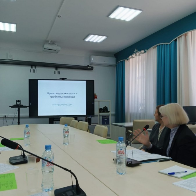 В круглом столе приняла участие доктор филологических наук заместитель председателя Общества «Хайдельберг-Симферополь» из Германии Хельгард Лёрхер с докладом о совместном проекте с германистами из Крымского инженерно-педагогического университета имени Февзи Якубова «Особенности литературного перевода с русского языка на немецкий язык на примере Крымтатарских сказок».