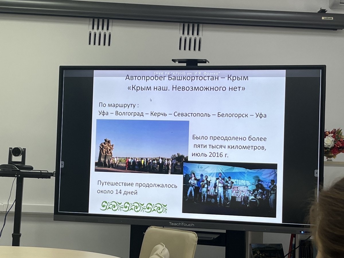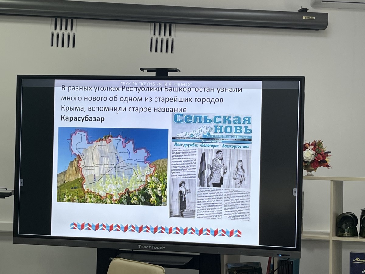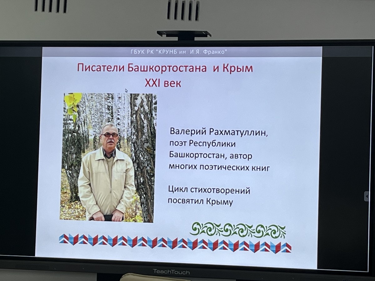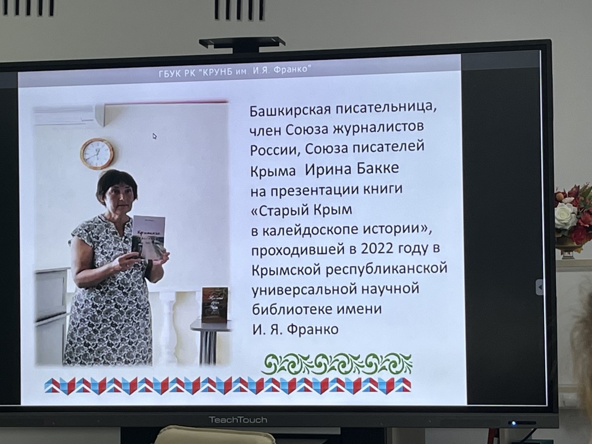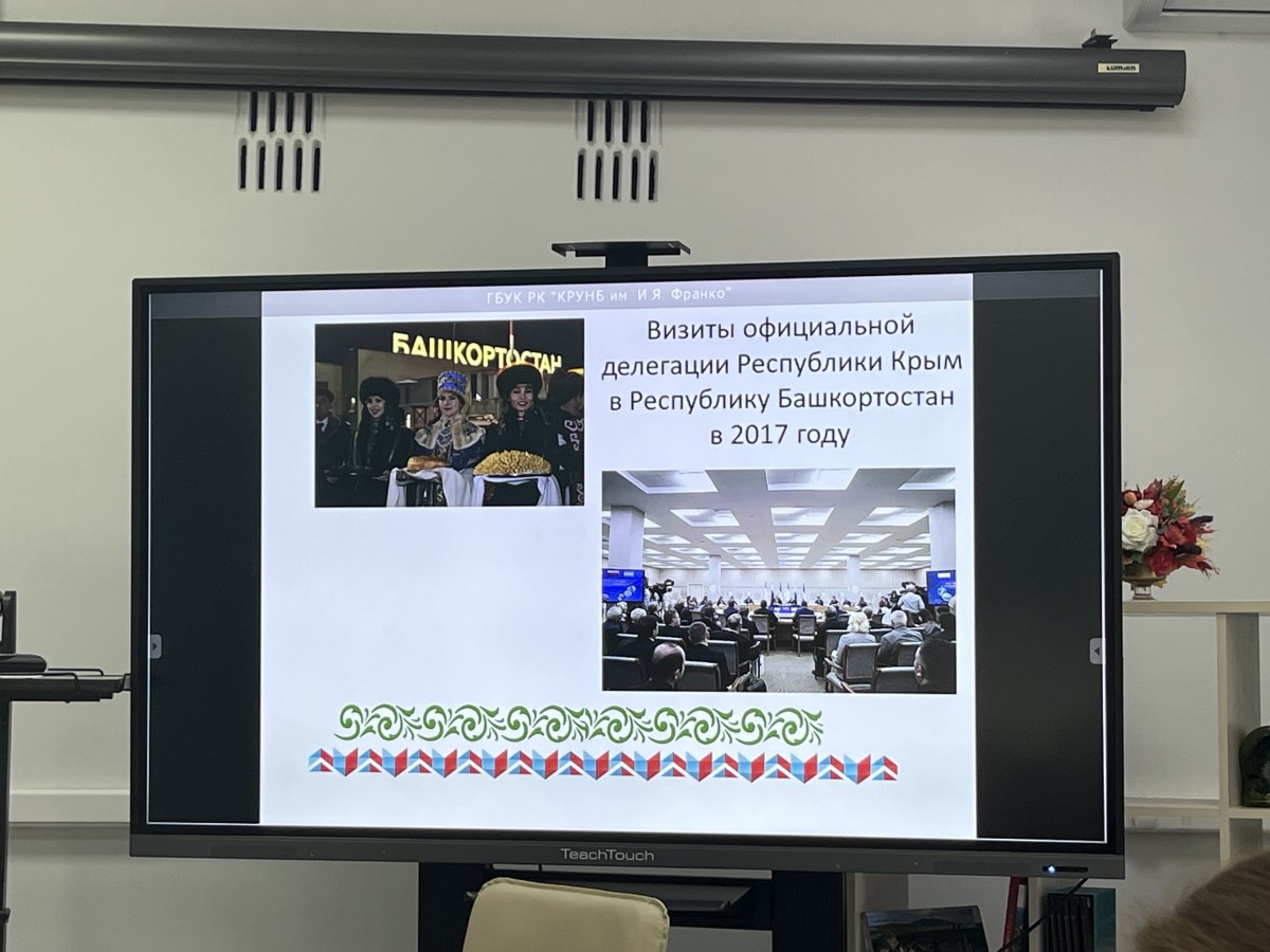 Главный библиограф отдела краеведения Крымской республиканской универсальной научной библиотеки имени И.Я.Франко Надежда Максимушкина рассказала о культурно-исторических и литературных связях Крыма и Башкирии.