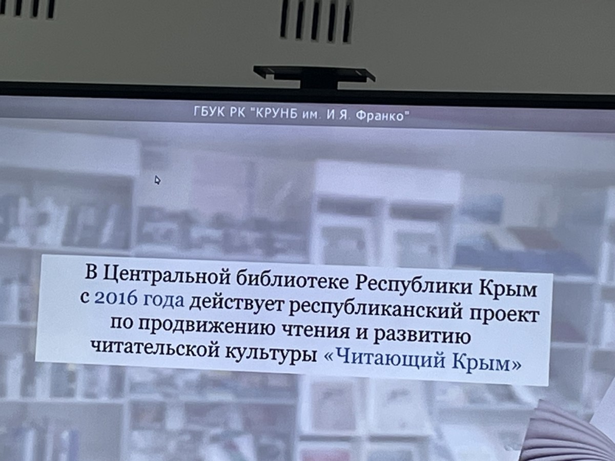 Заведующий отделом культурно-досуговой работы КРУНБ им. И.Я. Франко Ирина Брязгунова выступила с сообщением «Читающий Крым» – республиканский проект по продвижению чтения и развитию читательской культуры».