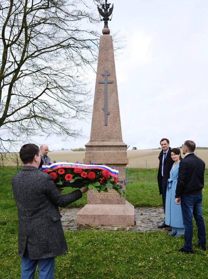 В рамках мероприятий, посвящённых 210-летию завершения Заграничного похода Русской армии 1813-1814 гг., Посольство России во Франции 3 апреля 2024 г. провело церемонии возложения венков к монументам погибших в боях на территории Шампани русских солдат и офицеров.