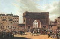 «Вступление российских войск в Париж. 31 марта 1814» (Картина неизвестного художника с оригинала И.Ф. Югеля по рисунку У.Л. Вольфа, 1815, Всероссийский музей Пушкина, Санкт-Петербург)