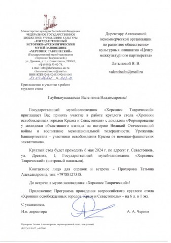 6 мая 2024 года на базе Государственного историко-археологического музея-заповедника «Херсонес Таврический» в рамках работы выставки «Высеченные в камне имена» к 80-й годовщине освобождения Крыма и Севастополя в годы Великой Отечественной войны пройдет всероссийский круглый стол «Хроники освобожденных городов. Крым и Севастополь».