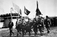 В освобожденной столице Советской Белоруссии городе Минске 16 июля 1944 года состоялся необычный парад. В военной форме и гражданской одежде, с винтовками Мосина, автоматами ППШ и немецкими “шмайсерами” вдоль праздничной трибуны, установленной на ипподроме, шли колонны белорусских партизан. Открыла парад партизанская бригада “Народные мстители”имени В.Т. Воронянского. В рядах бригады в параде участвовали уроженцы Башкирии - Заки Шаймуратов и Сергей Бабин.