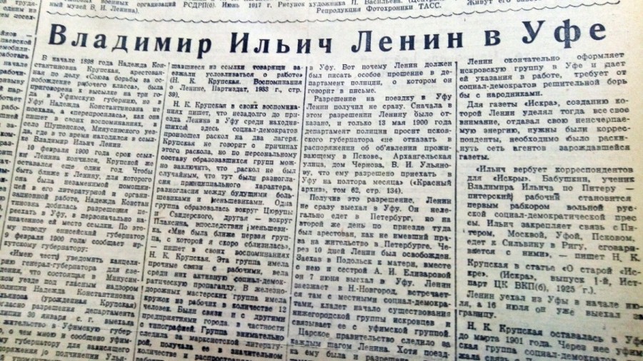 В Уфе Ленин вербовал и готовил агентов и корреспондентов для «Искры». Первым рабкором вольной русской социал-демократической прессы стал его ученик по Питеру, рабочий Бабушкин. В социал-демократических кружках, которыми руководила Надежда Крупская, воспитались первые большевики из уфимских рабочих. «Из кружка в железнодорожных мастерских вышел революционер, член Уфимского комитета РСДРП Иван Якутов, руководивший в 1905 году революционной борьбой рабочих Уфы против царского самодержавия», — приводит пример издание.