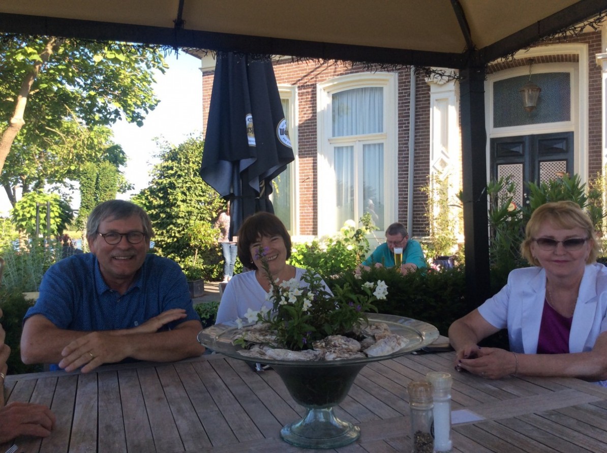 Сразу по приезду обсудили на террасе гостиницы программу нашего пребывания. Программу нам приготовили очень насыщенную – уже через час после прибытия мы встретились с журналистами из местной газеты, затем была организована водная прогулка на пароходе по реке Эйссель и дружеский ужин с друзьями в местном ресторане.