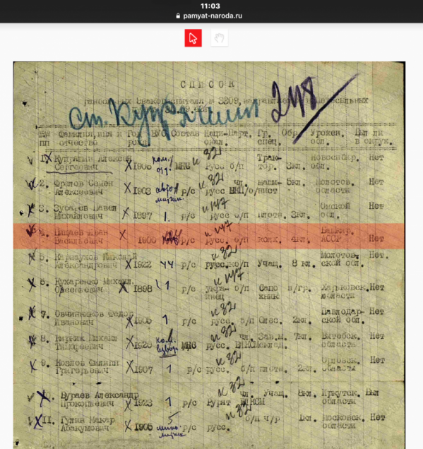 Пищаев Иван Васильевич 1900 года рождения, призван на военную службу осенью 1941 года. Воевал связистом, рядовым стрелковой дивизии. был участником боев за Сталинград, был ранен. В декабре 1942 года семья получила извещение, что Пищаев Иван Васильевич красноармеец 87 с/д «пропал без вести 20.12.1942 года Сталинградская область Ворошиловский район Антоново-Шестаковский с/с д.Антоновка».