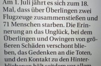 Траурная церемония, посвященная 18-ой годовщине трагедии над Боденским озером в г.Юберлинген Германия