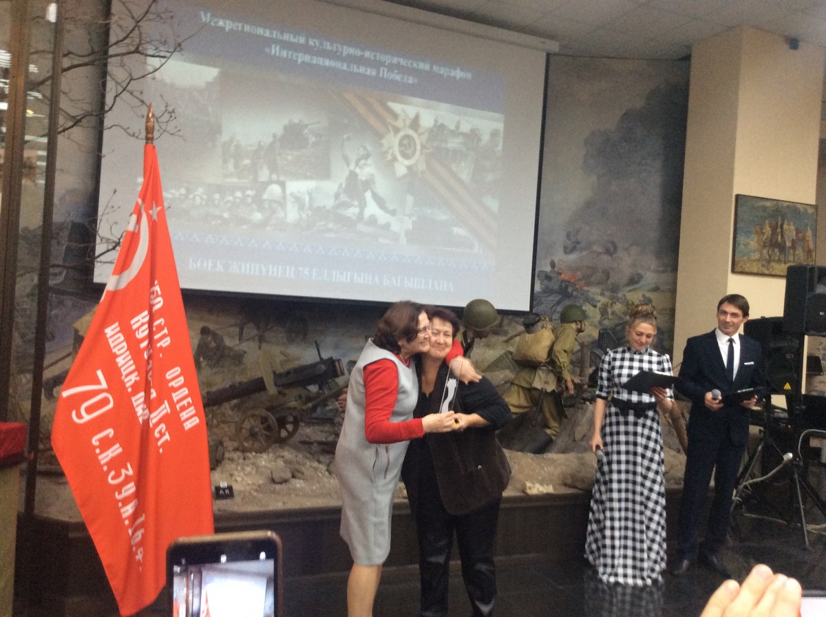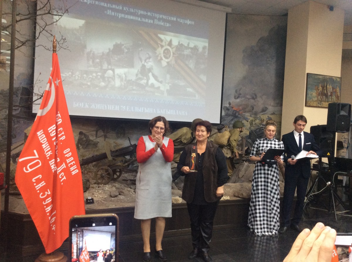 Всем известен подвиг великого татарского поэта Мусы Джалиля. Мы знаем о нашем земляке, уроженце Мишкинского района Гази Загитове, одним из первых водрузивших Знамя Победы над Рейхстагом. Правофланговой в женском авиационном полку была Герой Советского Союза, уроженка г.Белебея Магуба Гусейновна Сыртланова, совершившая 780 боевых вылетов, нанеся противнику значительный урон. О ее боевых подвигах рассказывают книги, изданные в Уфе, Белебее, Саратове, Казани, Москве. Памятники ей установлены в г. Белебее и в г.Белогорске Республики Крым. Об этом рассказали участники нашего проекта из Белогорского района Республики Крым, участвовавшие на открытии фестиваля «Интернациональная Победа» 2 сентября. Руководитель проекта поздравила с открытием презентации и поблагодарила организаторов за подготовку мероприятия.