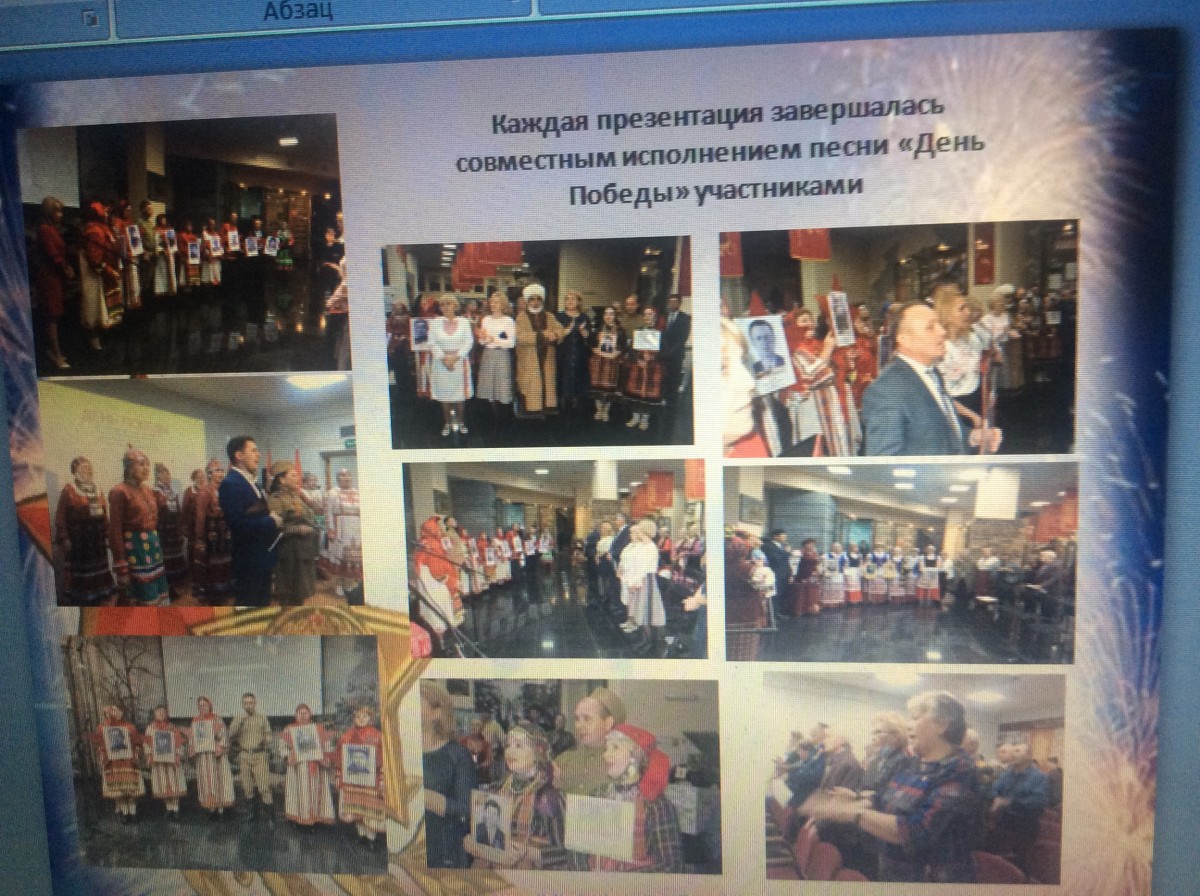 С сентября по октябрь месяц 2020 года в рамках марафона прошло 7 презентаций национально-культурных центров из 10 запланированных. Об участии своих народов в Великой Отечественной войне рассказали представители историко-культурных центров и национально-культурных организаций, представляющие башкирский, русский, татарский, чувашский, кряшенский, марийский, удмуртский, мордовский, белорусский, украинский, польский, туркменский, кыргызский, таджикский, узбекский народы.