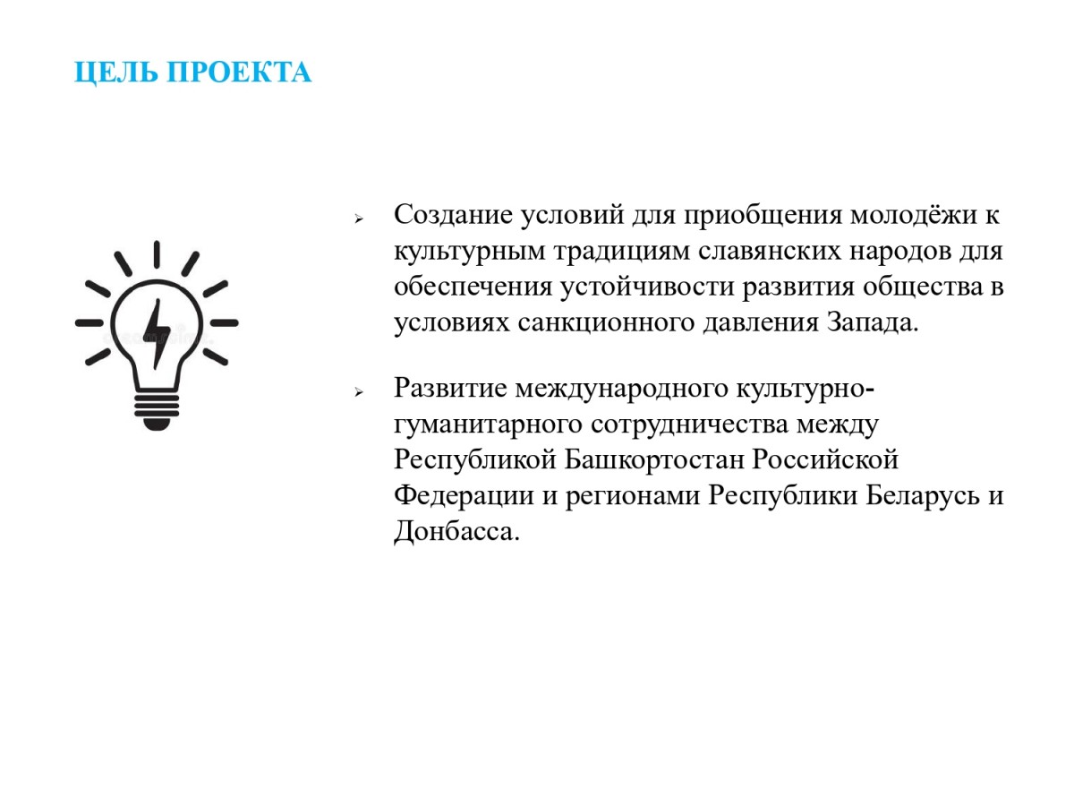 - Создание условий для приобщения молодёжи к культурным традициям славянских народов для обеспечения устойчивости развития общества в условиях санкционного давления Запада