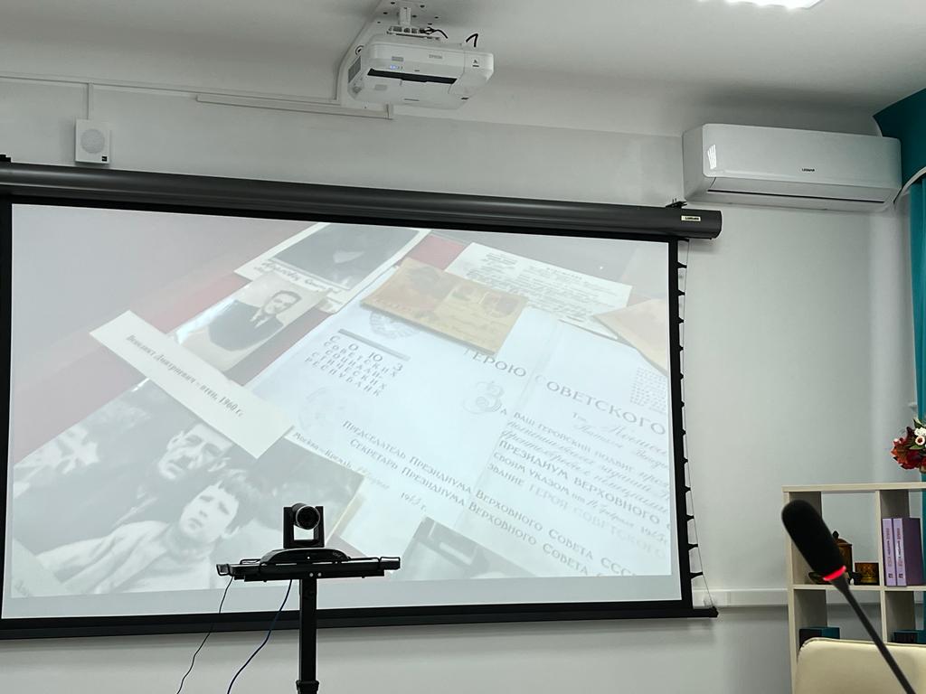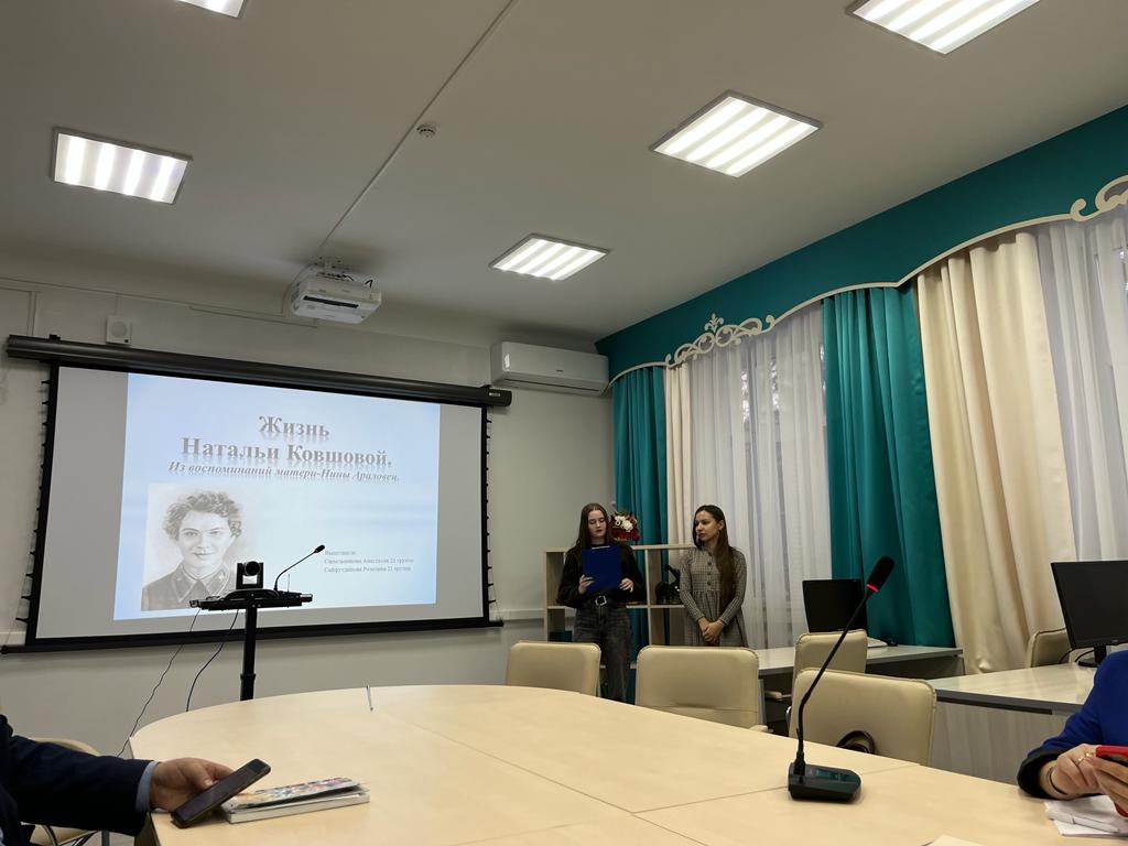 О биографии и подвиге Н. Ковшовой рассказали студенты УУНиТ Алина Бакиева и Сабина Абдуллина. Презентация содержала редкие фотографии из архива.