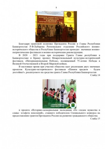 в 2022 году идет реализация двух значимых проектов: Культурно-исторического фестиваля «Памяти предков – будем достойны!», реализуемого на средства гранта Главы Республики Башкортостан