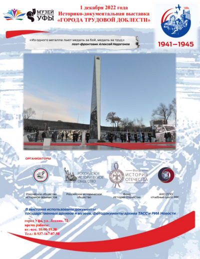 В публикации использованы материалы и фотографии ИА «Башинформ»: https://www.bashinform.ru/news/culture/2022-12-01/v-muzee-istorii-goroda-ufy-otkrylas-vystavka-goroda-trudovoy-doblesti-pobeda-kovalas-v-tylu-3053881