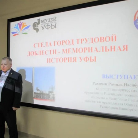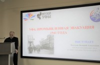 С презентацией планшетной выставки перед собравшимися выступил директор Музея истории города Уфы, кандидат исторических наук Тимур Ильясов. Историк, председатель Российского военно-исторического общества в Республике Башкортостан Рамиль Рахимов рассказал о стеле «Город трудовой доблести» – мемориальной истории Уфы, а научный сотрудник Музея истории города Уфы Валерий Молтусов - о промышленной эвакуации 1941 года в Уфу.