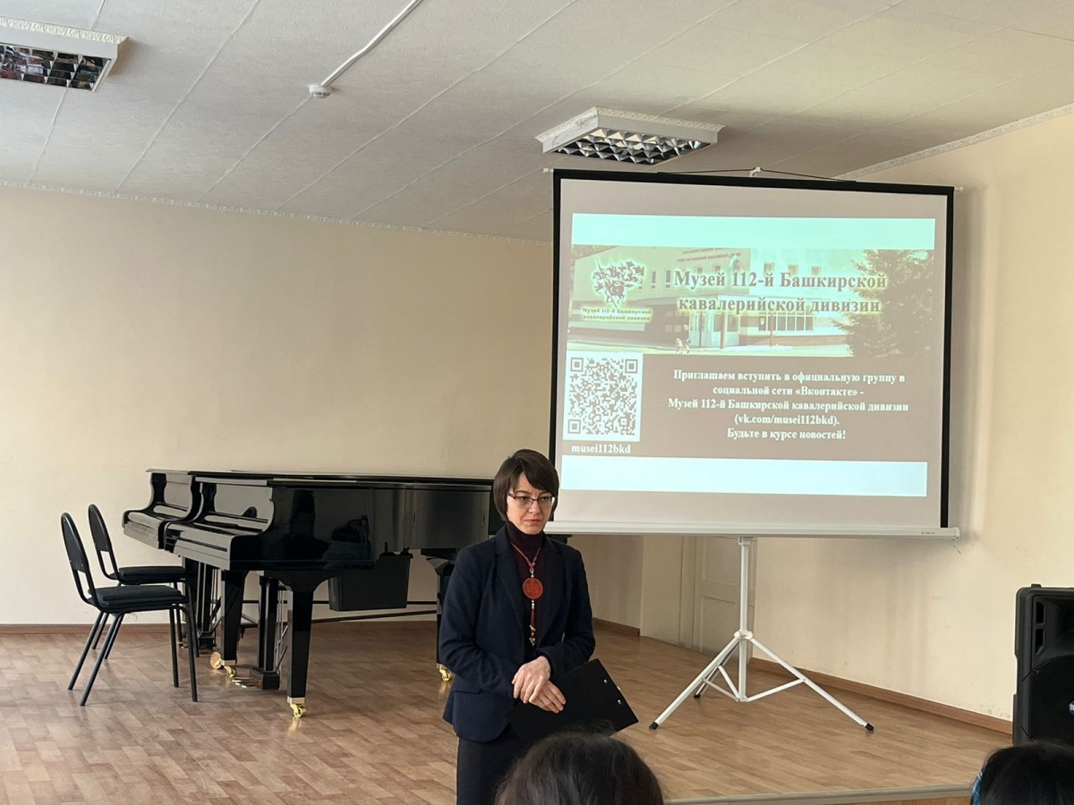 В Уфимском училище искусств (колледже) прошла встреча с руководителем проекта «Памяти предков -будем достойны!» Валентиной Латыповой и научным сотрудником музея 112-й Башкирской кавалерийской дивизии Гульназ Кинзябаевой.
