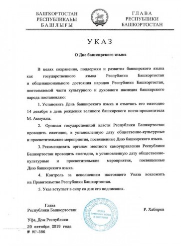 14 декабря в Республике Башкортостан проходит День башкирского языка. Дата официально установлена в этом году указом главы Республики Башкортостан Радия Фаритовича Хабирова в целях сохранения, поддержки и развития башкирского языка.