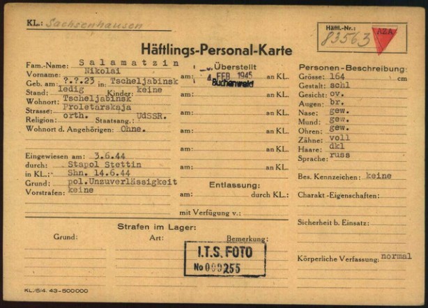 11 апреля 1945 года произошло освобождение узников концлагеря Бухенвальд. Заключенные взяли в руки оружие, напали на охрану и чуть более чем за час захватили территорию. После окончания восстания в Бухенвальд пришли американские войска. Бежавших эсэсовцев отлавливали по близлежащим лесам. Тысячи военнопленных были спасены. Однако сотни истощённых узников умерли после освобождения лагеря. Среди них и наш земляк - Саламатин Николай Филиппович (Николай Малютко) умер в лагере военнопленных «Ваймар-Бухенвальд» 21 апреля 1945 года. В «Книге мертвых» Бухенвальда значится: Nikolaj Maljutko. Todesdatum (дата смерти): 21.04.1945. Sterbeort (место смерти): Buchenwald.