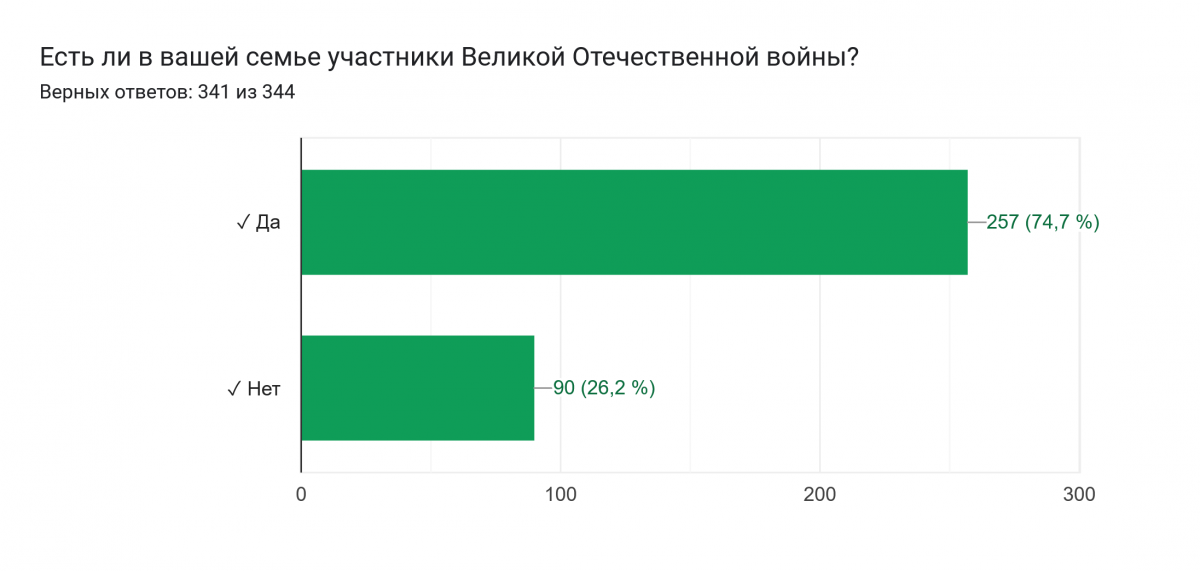 Участники тестирования осведомлены об основных памятных датах (даты начала и окончания Великой Отечественной и Второй мировой войн, День Неизвестного солдата). Хорошо усвоены ключевые события войны (Защита Брестской крепости, Сталинградская битва). Респонденты знают о подвигах героев (Николай Гастелло, Рихард Зорге).