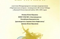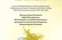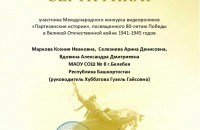 Сертификаты участников Международного конкурса «Партизанские истории».