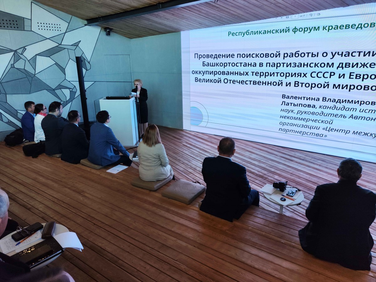 О проведении поисковой работы об участии жителей Башкортостана в партизанском движении на оккупированных территориях СССР и Европы в годы Великой Отечественной и Второй мировой войны рассказала Валентина Владимировна Латыпова, кандидат исторических наук, руководитель Автономной некоммерческой организации «Центр межкультурного партнерства».