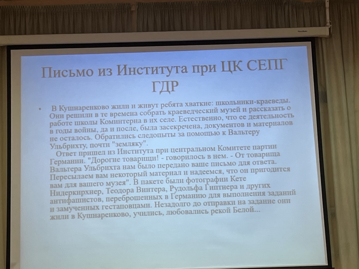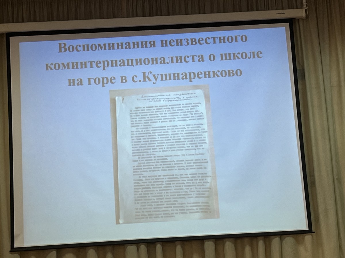 О роли разведывательной школы «Коминтерна» в селе Кушнаренково Республики Башкортостан в подготовке кадров для ведения разведывательно-диверсионной работы в тылу противника в годы Великой Отечественной войны рассказал научный сотрудник Кушнаренковского историко-краеведческого музея – Кадыров И.Ф.