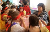 Праздничный концерт открыли самые маленькие участники художественной самодеятельности сельского многофункционального клуба с. Красный Яр: детские танцевальные коллективы "Карамельки", "Арабеск" и детский образцовый фольклорный ансамбль "Кудринки".