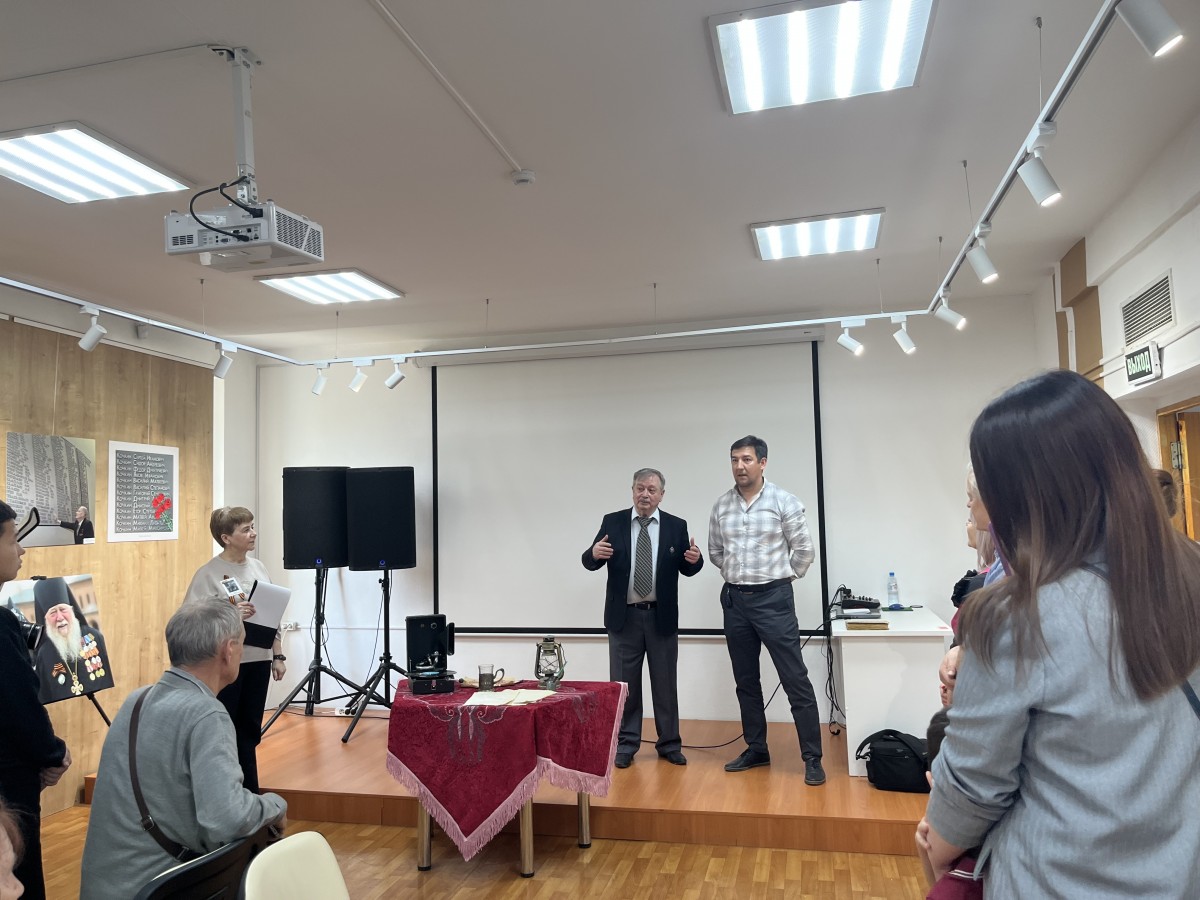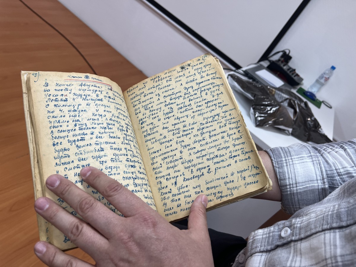 На выставке представлено более 30 фотографий, каждая из которых передаёт дух военного времени, мужество и стойкость солдат. Особое место заняли снимки с выдержками из фронтовых дневников Халидара Хасанова, служившего в 313-м кавалерийском полку. В семье его внука хранятся десятки тетрадей с воспоминаниями о боях, потерях и несгибаемой вере в Победу. Александр Анисимов рассказал о работе над изданием этих записей, включая расшифровку текстов, написанных латиницей и арабской вязью.
