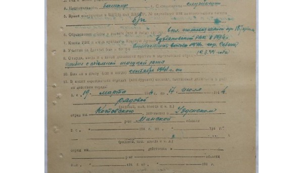 - Первый призыв в РККА - 1934 г. (Буздякский РВК), второй - 24.06.1941 г. (Альшеевский РВК)