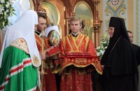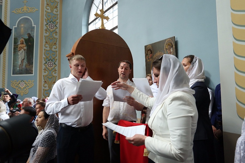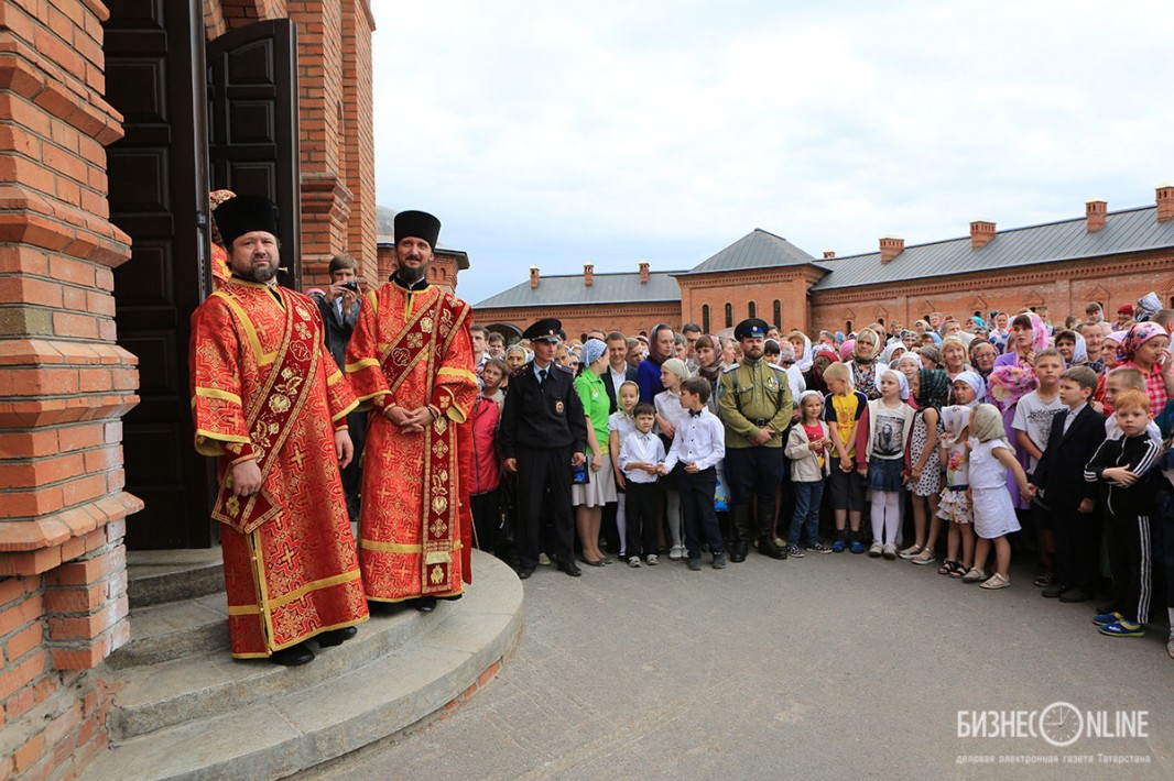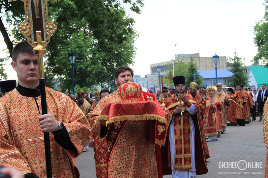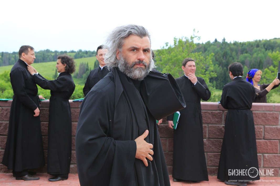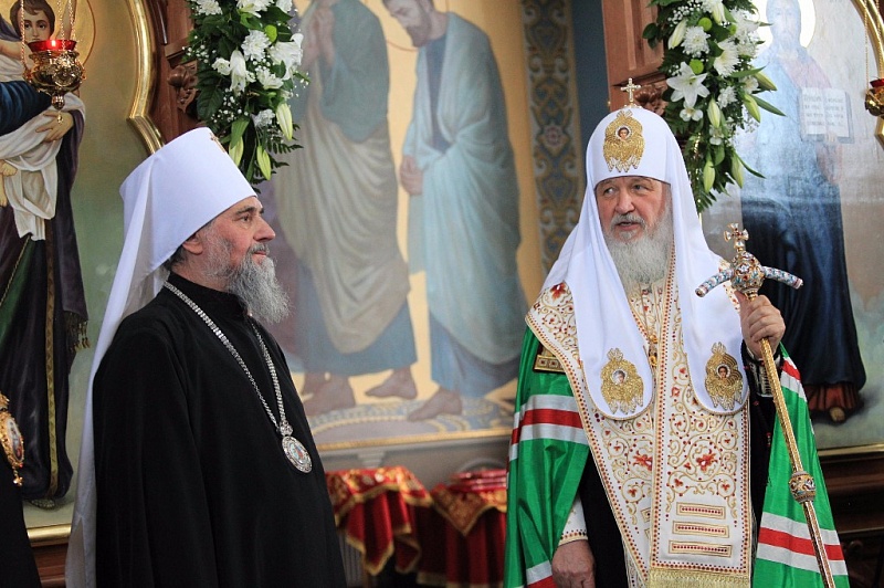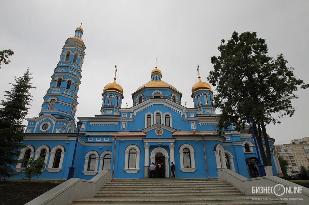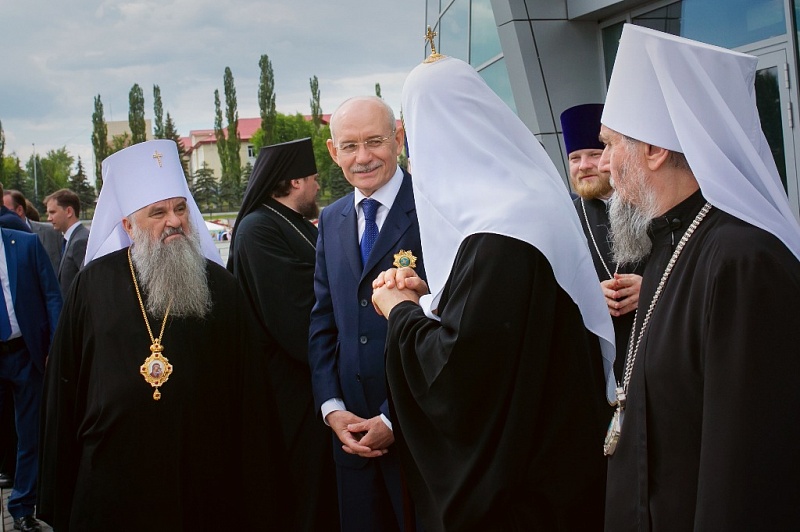 Внутри храма главе РПЦ сослужило множество церковных иерархов — в их числе казанский митрополит Феофан, митрополит Санкт-Петербургский и Ладожский Варсонофий, митрополит Самарский и Сызранский Сергий, митрополит Уфимский и Стерлитамакский Никон, митрополит Оренбургский и Саракташский Вениамин, архиепископ Уральский и Актюбинский Антоний и др.