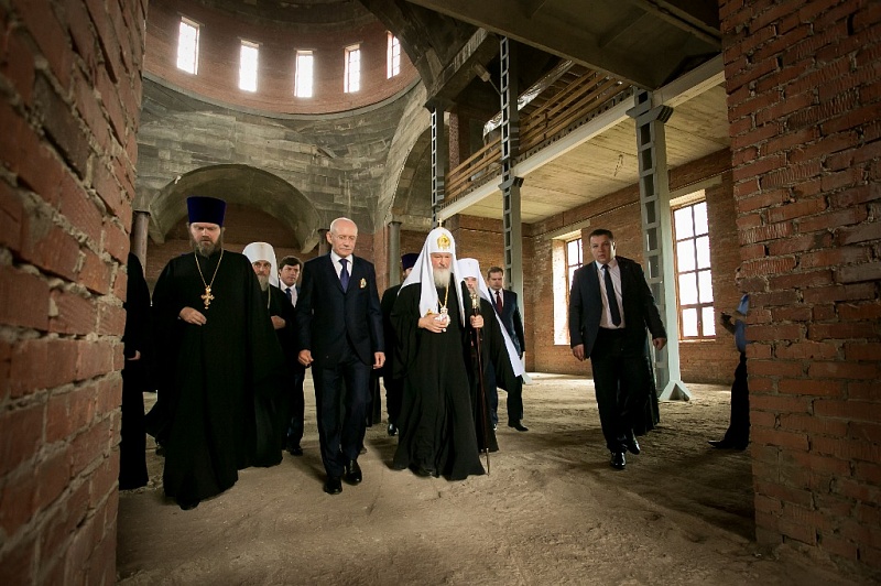 По окончании приема Святейший Патриарх Кирилл в сопровождении главы Республики Башкортостан Р.З. Хамитова и митрополита Уфимского и Стерлитамакского Никона посетил строящийся Воскресенский собор в Уфе.