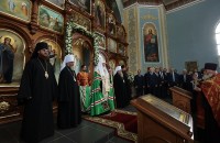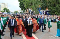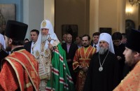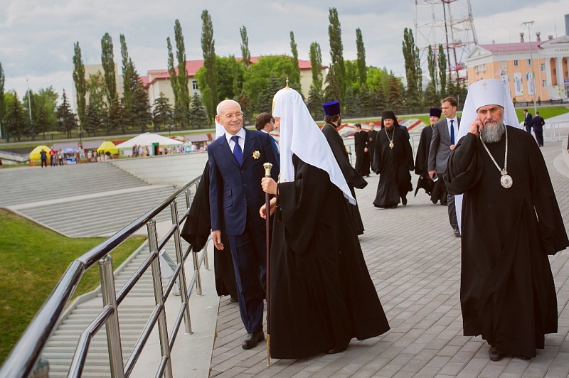 Далее Предстоятель Русской Церкви посетил собор в честь преподобного Сергия Радонежского. Сергиевский собор был единственным из более 720 храмов Уфимской епархии, который не закрывался в советское время. Но в 1937-42 гг. службы в нем не велись: абсолютно все уфимское духовенство было арестовано, расстреляно или отреклось от сана. С послевоенных лет и до недавнего времени Сергиевская церковь была центром православной жизни Уфимской епархии.