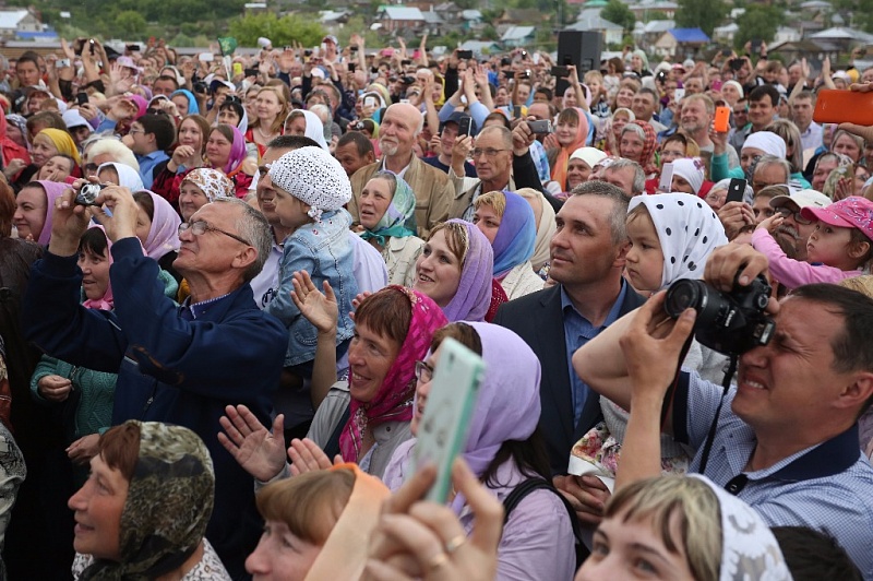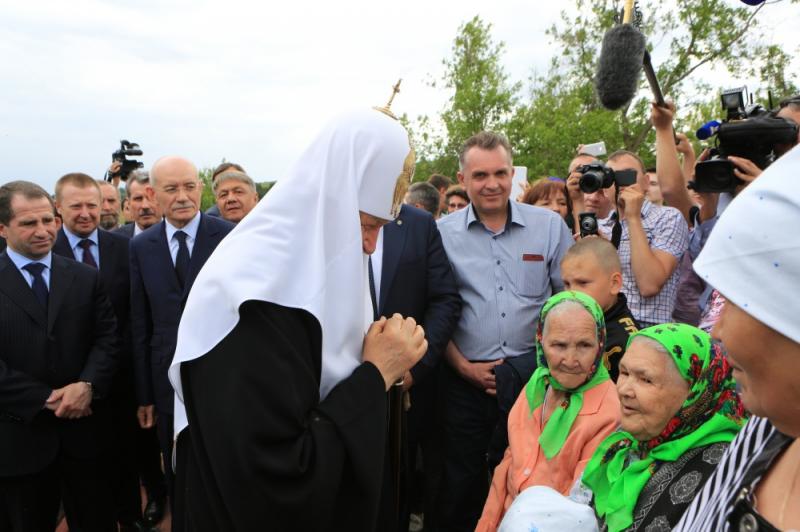 Сразу из аэропорта на вертолете патриарх направился в город Бирск, где последние полгода специально к его приезду отремонтировали Михаило-Архангельский храм. Здесь глава русской православной церкви подарил православным несколько икон и пасхальное яйцо, а сам получил в дар копию иконы Николая Чудотворца. Следующим пунктом программы оказалась деревня Уса-Степановка Благовещенского района, где полвека назад служил священником вышеупомянутый дед патриарха Кирилла — известный в округе священник Василий Степанович Гундяев. В годы «хрущевских гонений» он отстоял у коммунистов местную церковь. Посмотреть на патриарха собралось с полсотни человек — местные жители да гости с соседних сел. В самой Уса-Степановке столько человек не живет. Тем не менее перед селянами патриарх Кирилл решил не просто выступить, но и рассказать им о своем известном деде.