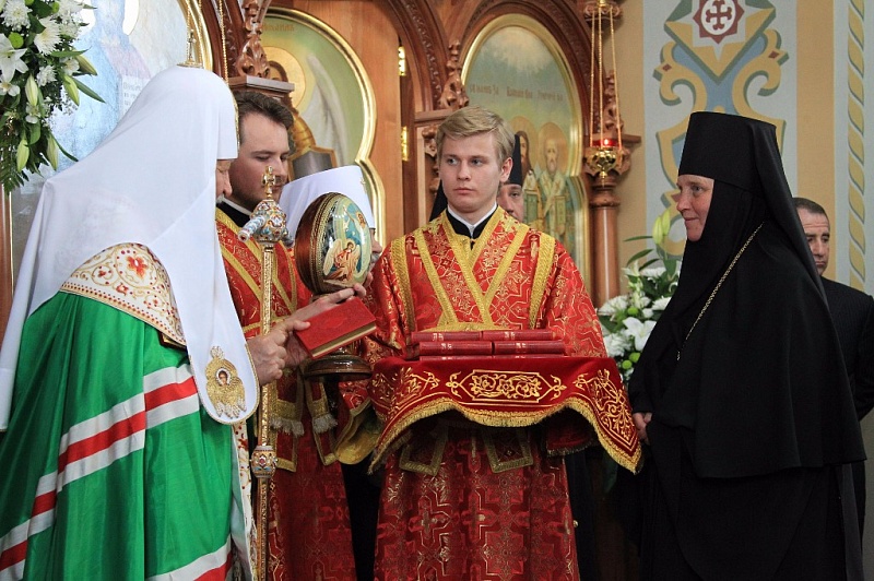 Литургия стала кульминацией патриаршего визита: Кирилл освятил новую церковь, восстановление которой длилось с 1991 года. После этого был оглашен указ Московской патриархии, предписывающий — в связи с завершением реставрационных работ — присвоить храму Рождества Пресвятой Богородицы статус кафедрального собора. Одновременно этот статус отнимался у Сергиевского храма, но ему разрешалось сохранить за собой наименование собора.